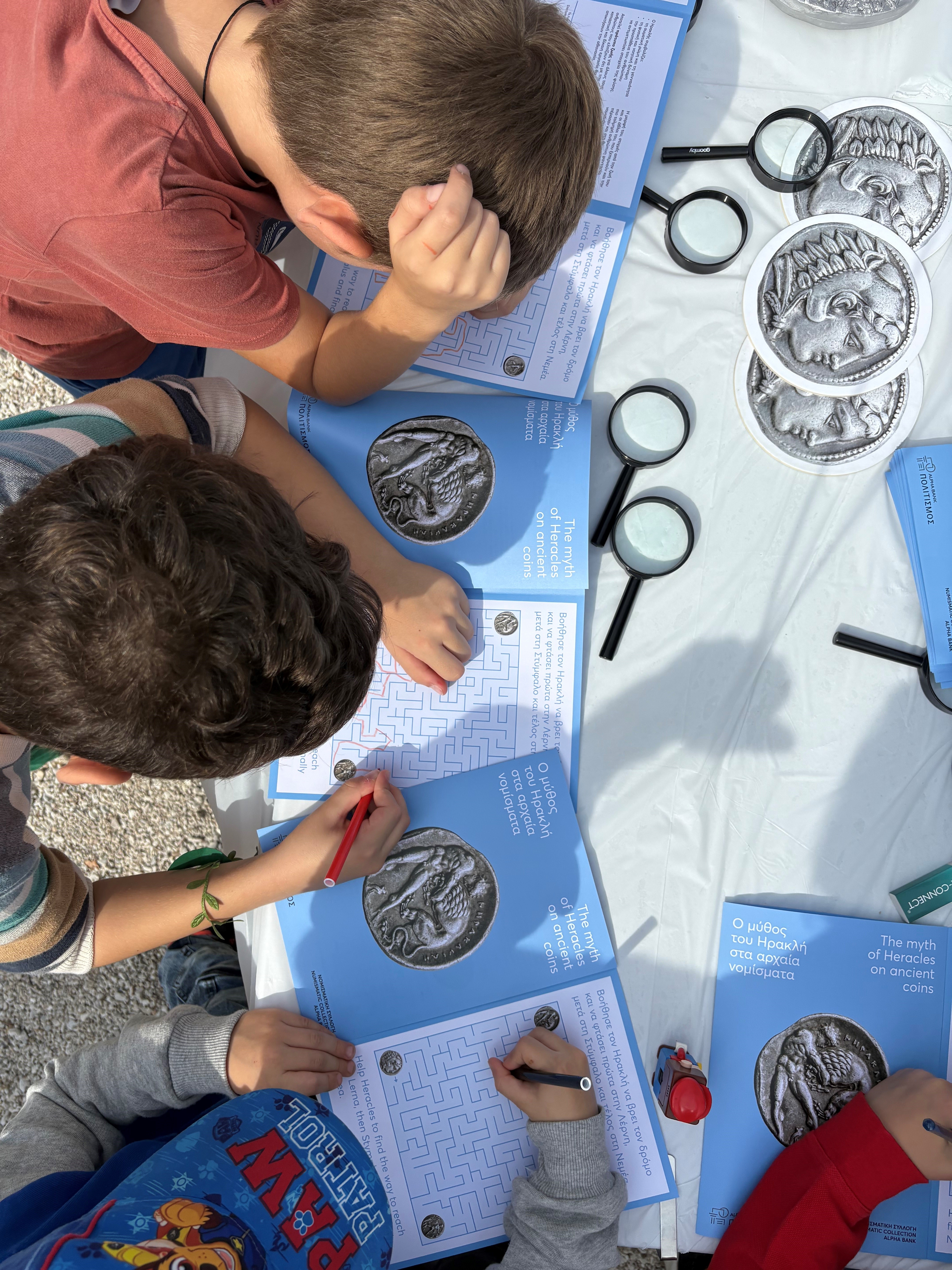 Το εργαστήριο ταξίδεψε το κοινό στον κόσμο της αρχαίας μυθολογίας και της νομισματικής τέχνης μέσα από τον μύθο του Ηρακλή, του πιο αγαπητού ήρωα της αρχαιότητας.