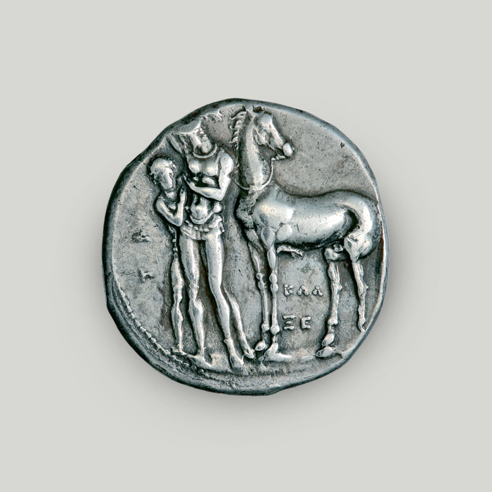 Ο αργυρός στατήρας της Φαιστού χρονολογείται το 300-280/270 π.Χ. Πρόκειται για ένα από τα ωραιότερα νομίσματα της Φαιστού. Απεικονίζει την πιο εντυπωσιακή φτερωτή μορφή της κρητικής μυθολογίας: τον χάλκινο γίγαντα Τάλω, το επονομαζόμενο πρώτο ρομπότ της Ιστορίας. Το πρώτο μισό του 5ου αιώνα π.Χ. η περιοχή της Φαιστού στην Κρήτη ήταν γνωστή για τις αρχαιότερες αργυρές κοπές, με παραστάσεις της αρπαγής της Ευρώπης.