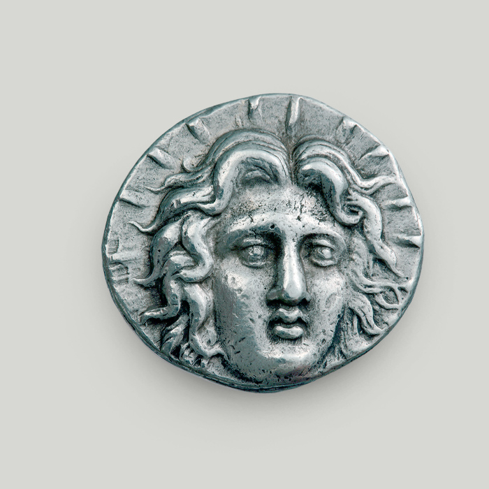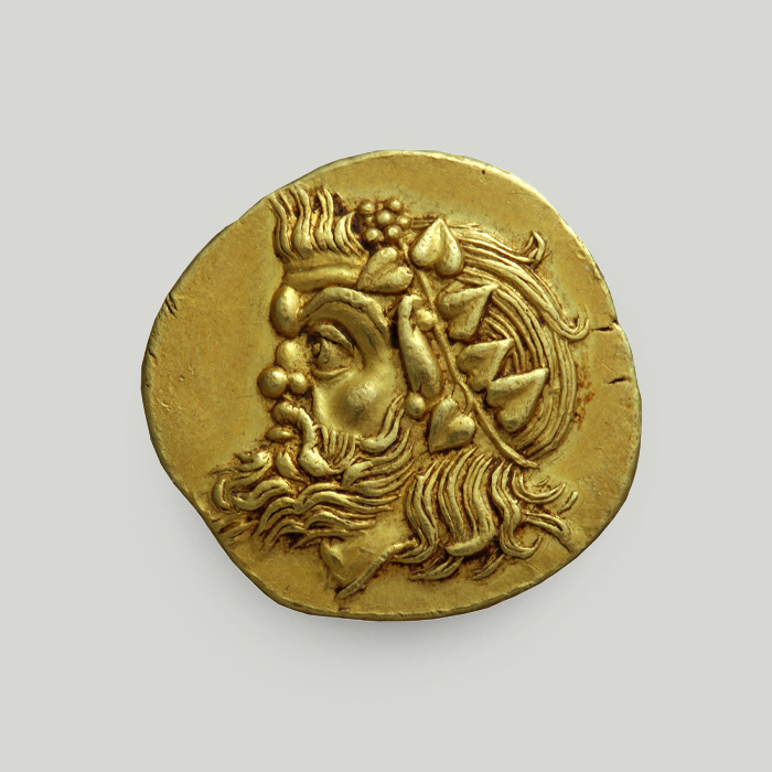 Επέλεξε την προστάτιδά του θεά Αθηνά για την εμπρόσθια όψη του χρυσού διπλού στατήρα. Θεά της σοφίας και του πολέμου, η Αθηνά ήταν υπεύθυνη για τη νίκη και την ελευθερία.