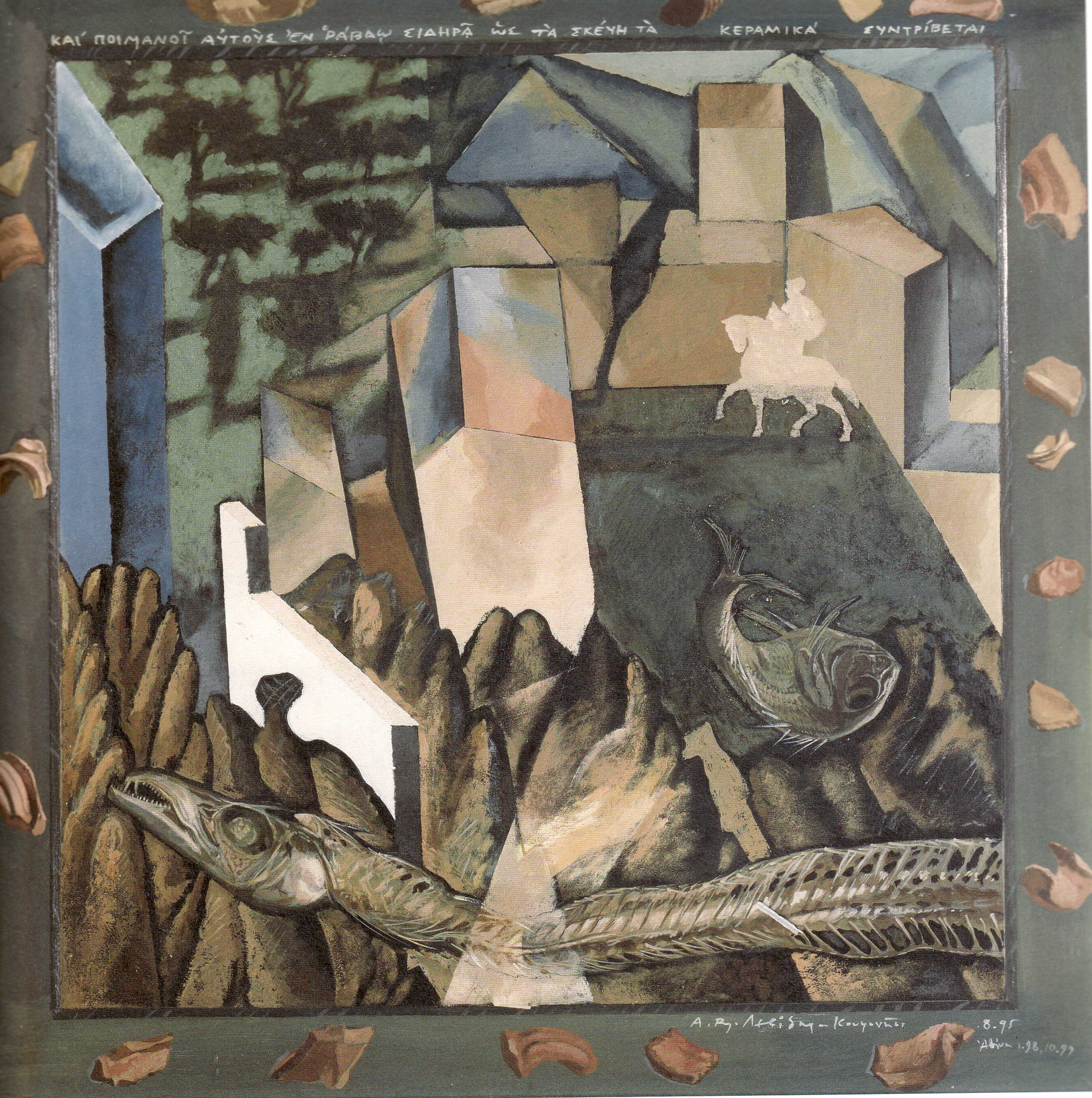 Η καλλιτέχνης κατορθώνει να δημιουργήσει μια ισορροπημένη σύνθεση με ετερογενή υλικά.