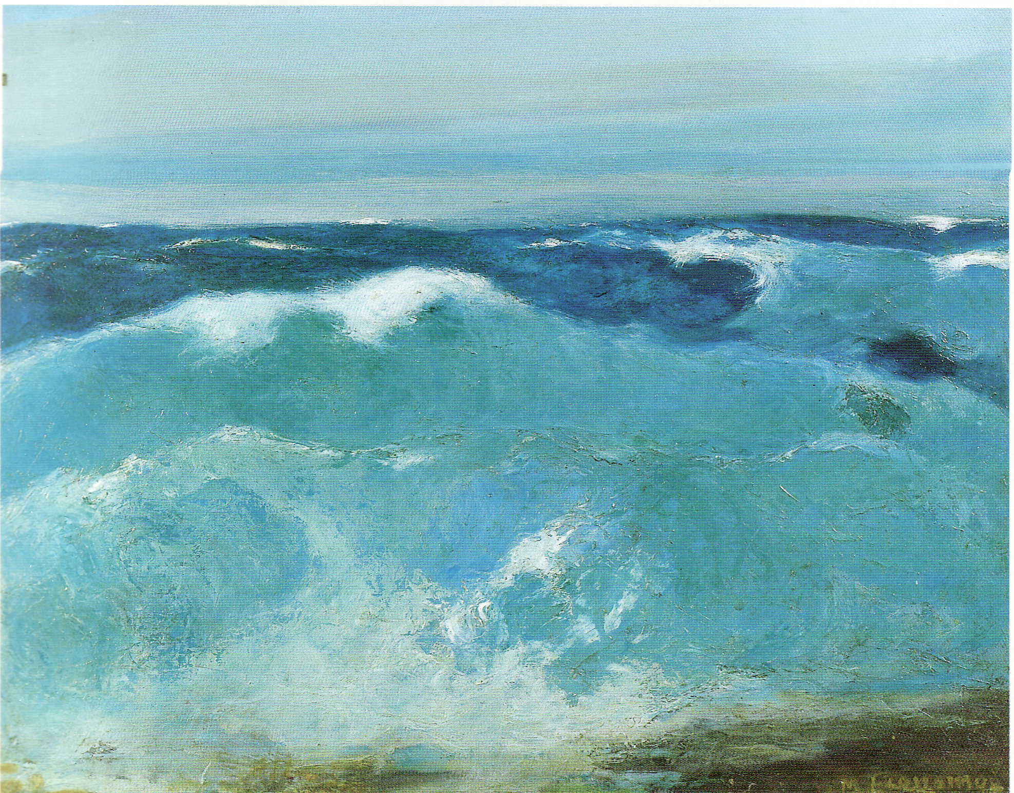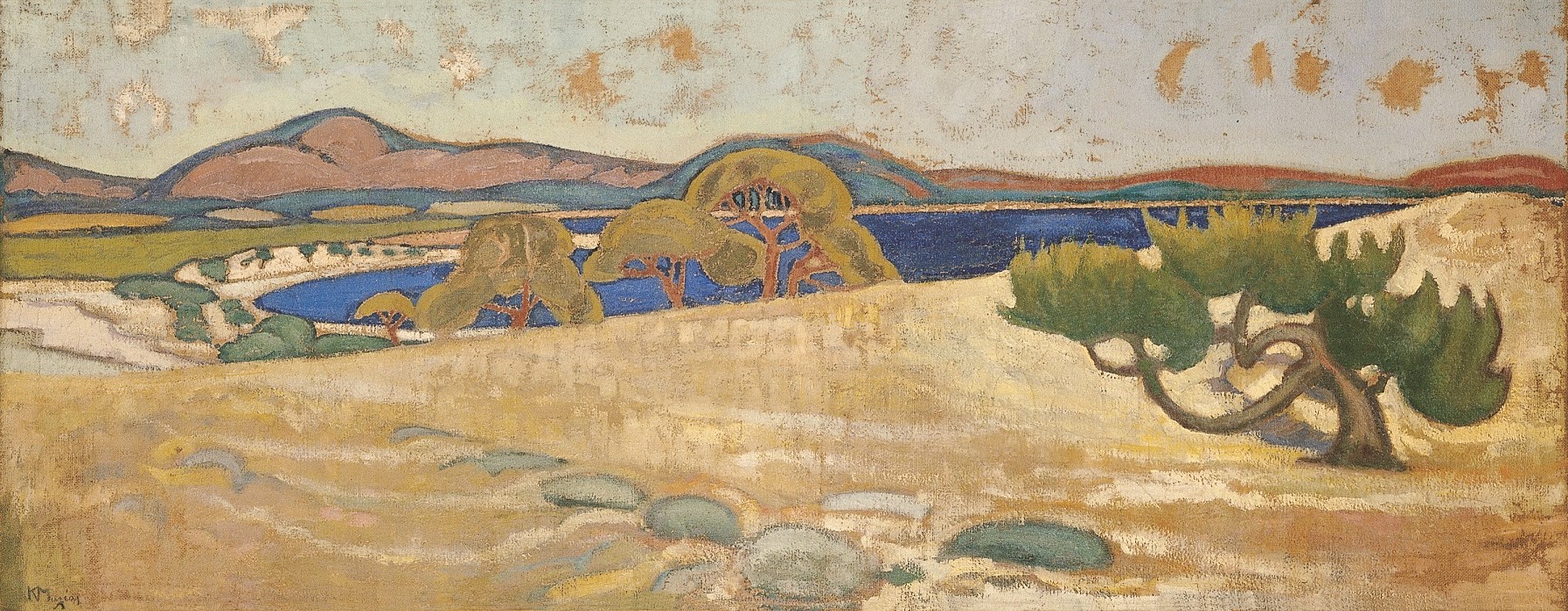 Although the image of the sea dominates, it is the children who are the protagonists, standing at the centre of the composition. Their presence adds a sense of innocence to the scene. At the same time, the simplicity of the design and the soft blue and brown hues exude calmness and tranquillity. The composition reveals Dimitrakopoulou's ease in the use of design and colours.