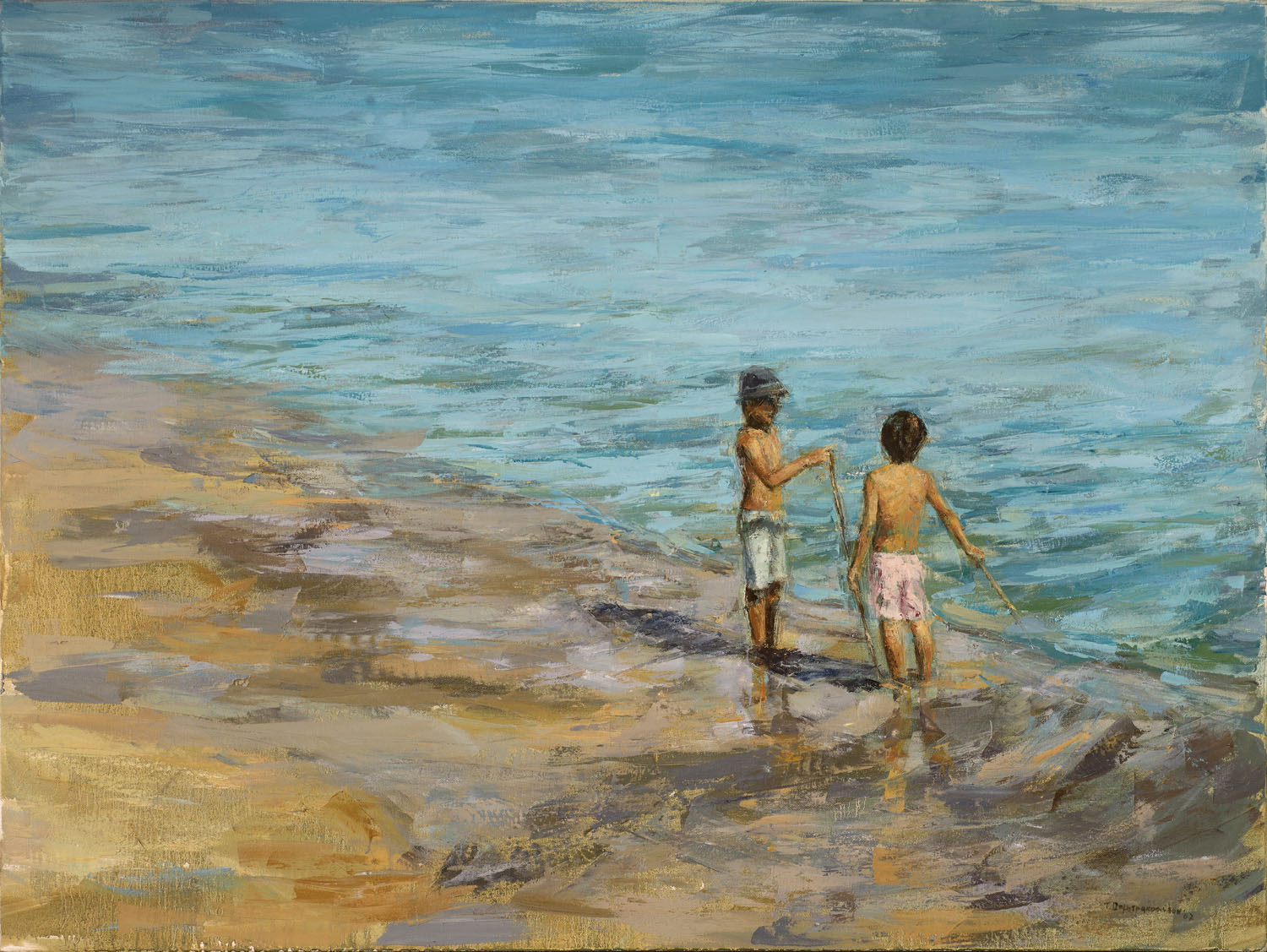 The painting Dialogue is part of Yiannis Moralis’ later works. It is a typical sample of the painter’s artistic development after the large series of works titled “Epithalamia” (1969-1970).