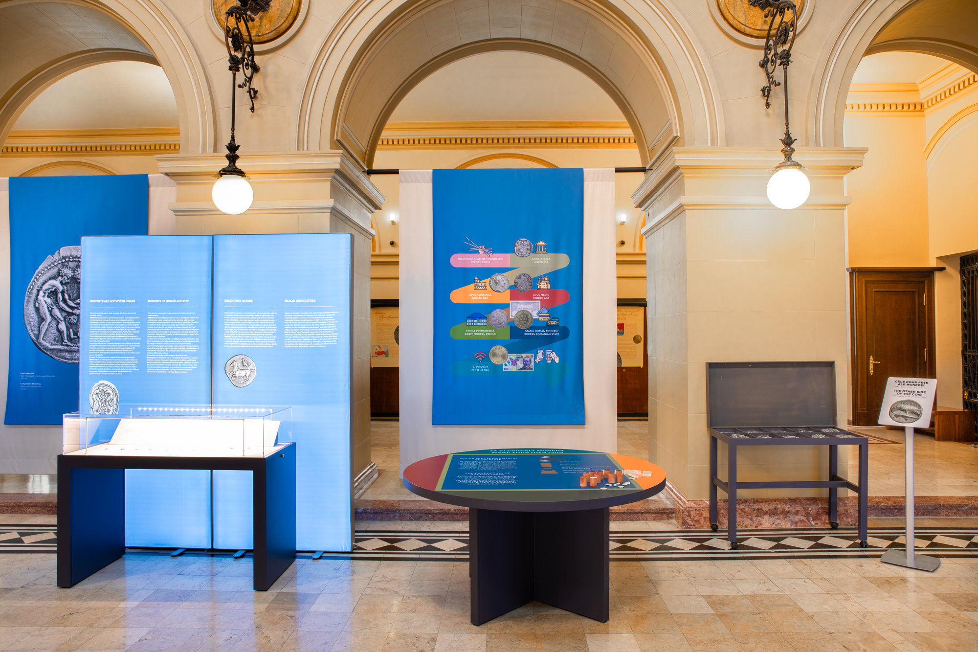 The exhibition "Two Sides of the Same Coin. Means of Transactions – Masterpieces of Art" is hosted in Romania. It showcases 100 Greek coins from the Alpha Bank Numismatic Collection, which narrate the appearance and evolution of coins, and depict mythical or historical figures and scenes. Some of these coins are rare masterpieces of ancient Greek coinage.
