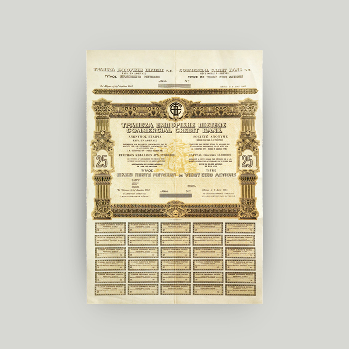 The oldest items of the Archives date from the mid-19th century. They were the property of the banks comprising the Alpha Bank Group and their subsidiaries.