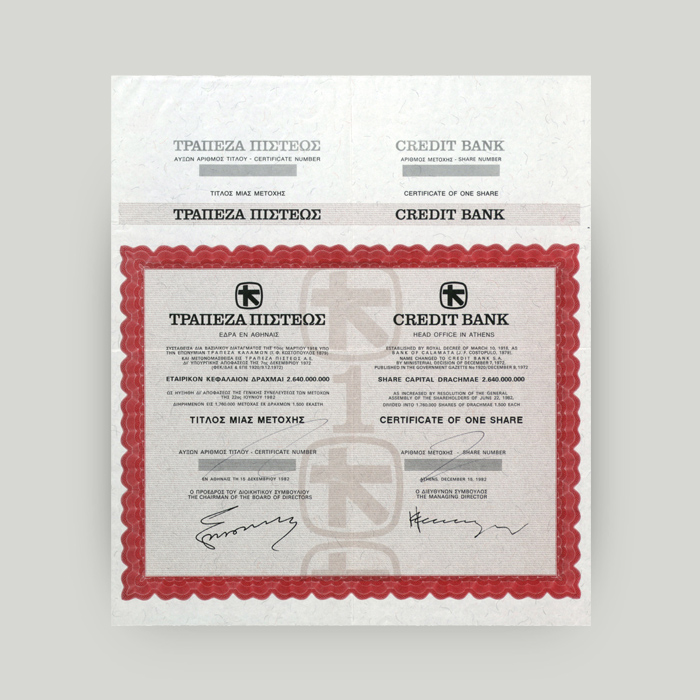 The purpose of the Alpha Bank Historical Archives is to preserve the Group’s corporate identity and historical memory. The Archives are responsible for preserving, classifying, storing and expanding the archival collections that belong to Alpha Bank and the Group’s other undertakings.