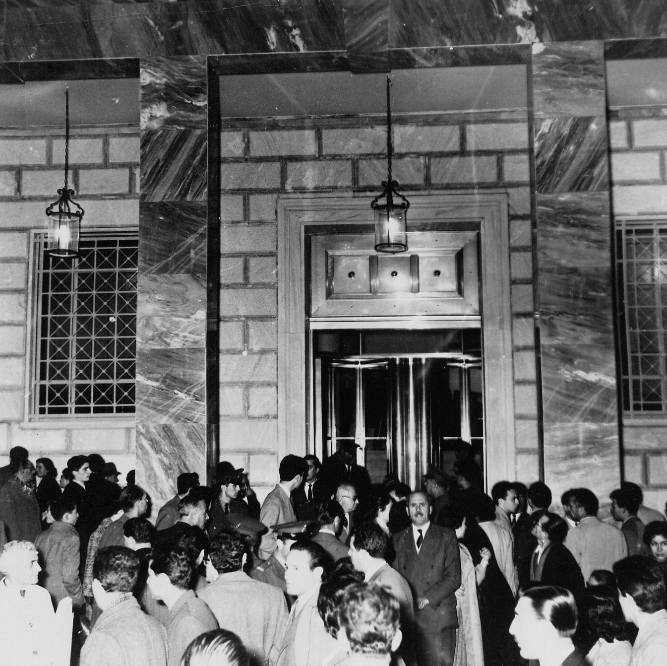 Photos of the Ionian Bank headquarters in different phases of its history from 1939 to the present: