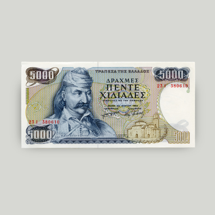 The first Bank of Greece banknotes were printed in 1932 by the American Bank Note Company in New York. They circulated in 2 denominations – 500 and 5,000 drachmas – in 1933.